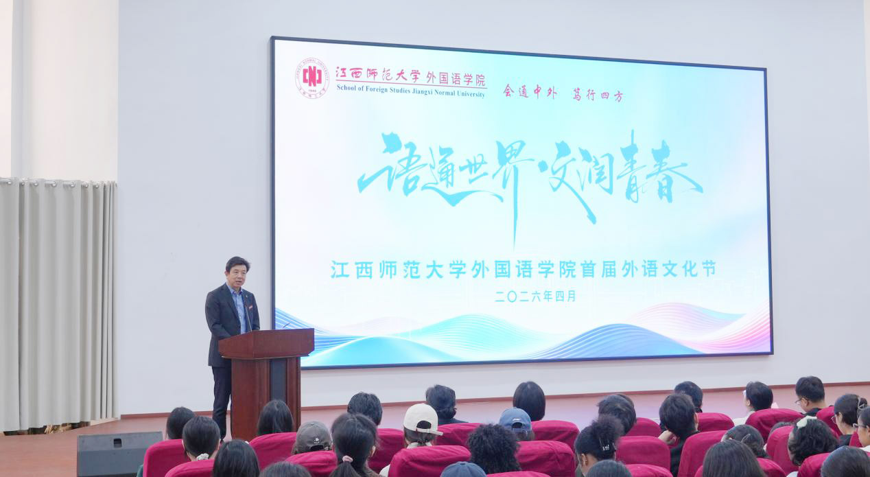 4月14日,我校在名达楼一楼报告厅举办首届外语文化节。校党委常委、副校长董圣鸿到场体验指导,师生代表800余人参加活动。